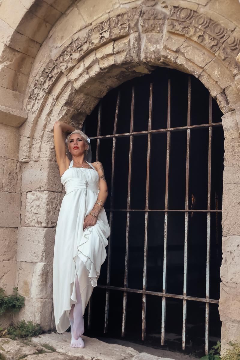Certains clichés dévoilent une facette plus sombre et décadente de la mariée. La robe immaculée se déchire, le sang coule, et la juxtaposition entre l’innocence du mariage et la brutalité des éléments crée un contraste saisissant.